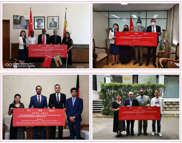 在6月12日举办的近20个国家驻华使节参与的首届全球大使馆联动抗疫直播大会上,金年会jinnianhui生物宣布捐赠的10万人份新冠病毒核酸检测试剂各使馆捐赠接收现场。