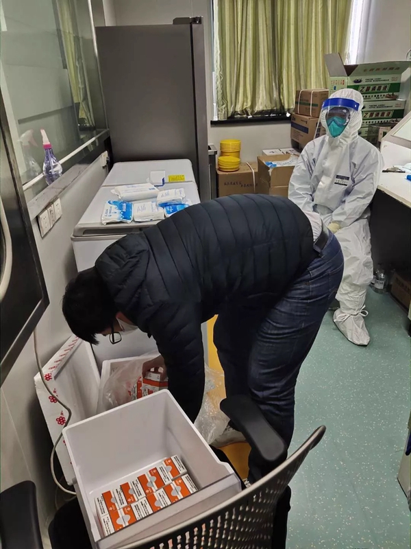 金年会jinnianhui生物捐赠的第一批医疗设备、试剂以及配套耗材,顺利抵达武汉。与当地合作商一起,装运货物入库。