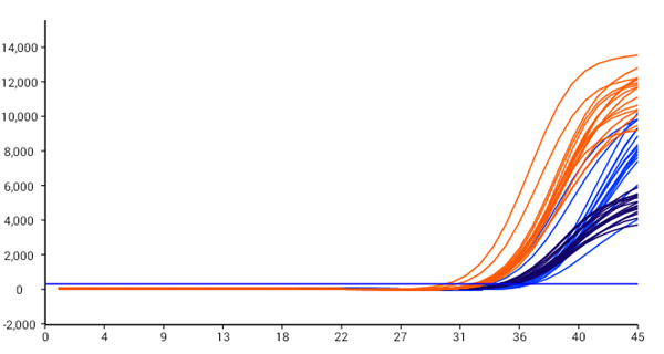 左图:N基因扩增曲线,右图:ORF 1ab基因扩增曲线