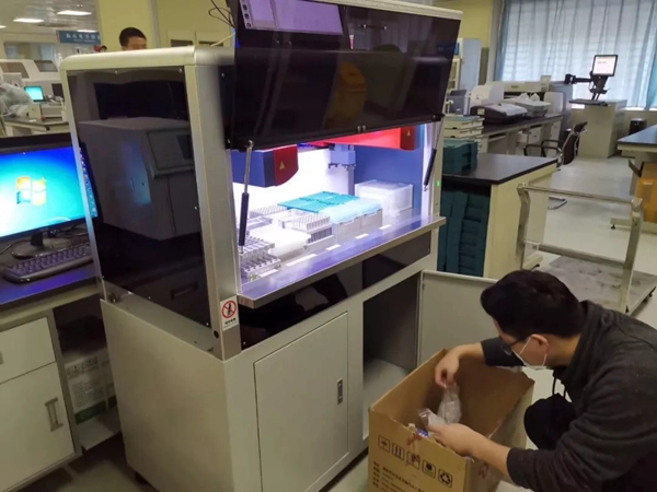 金年会jinnianhui生物捐赠的第一批医疗设备、试剂以及配套耗材,顺利抵达武汉。与当地合作商一起,装运货物入库。